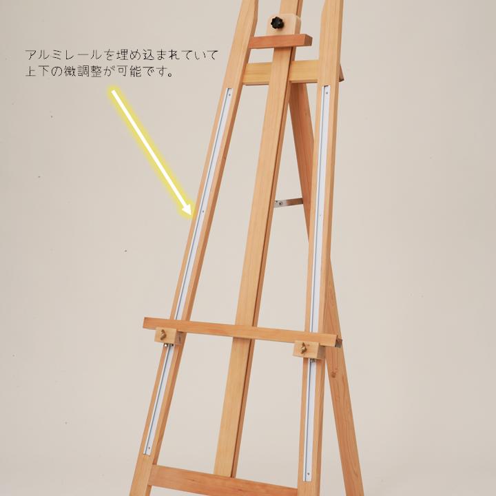 商品説明サイズ(W×H×D):600X1570X715mm 開口サイズ:100〜1170mm対応ボード厚み:20mm材質 本体:アメリカ杉/レール:アルミ色ナチュラル重量 4.5kg商品説明 天然木のイーゼルです。