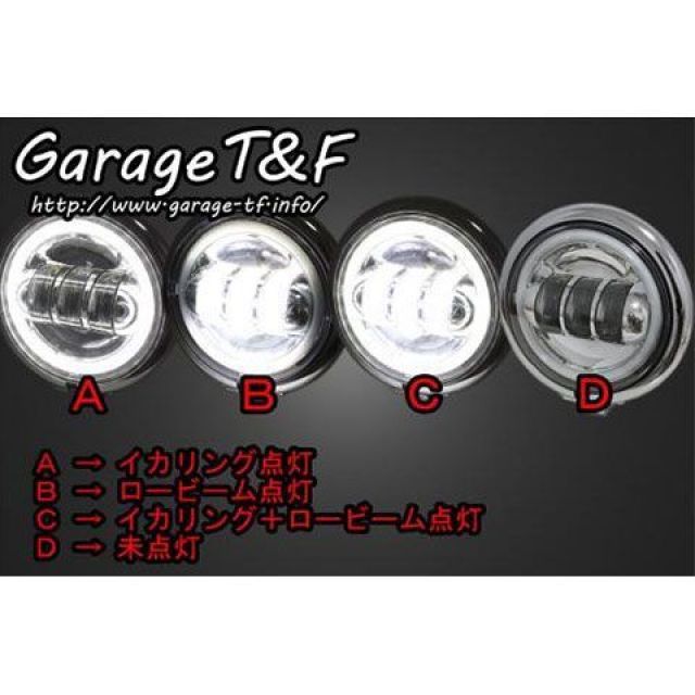 ガレージティーアンドエフ ドラッグスター400(DS4) ヘッドライト・バルブ 4.5インチベーツライト(メッキ) プロジェクターLED仕様(リング付き)&ライトステー(タイプA) キット ガレージT&F